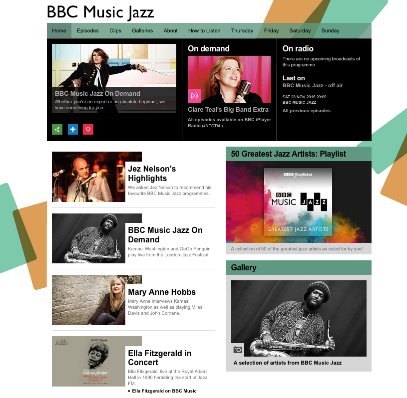 - Asked Jez Nelson to write an article listing his favourite BBC Music Jazz moments to be syndicated across the social channels to encourage catch up listening during the final week.