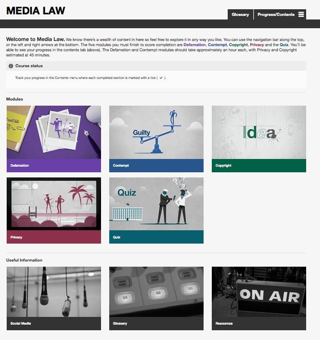 Each module was colour coded for ease of navigation – Defamation was purple, Contempt was blue, Privacy was red and Copyright was green.